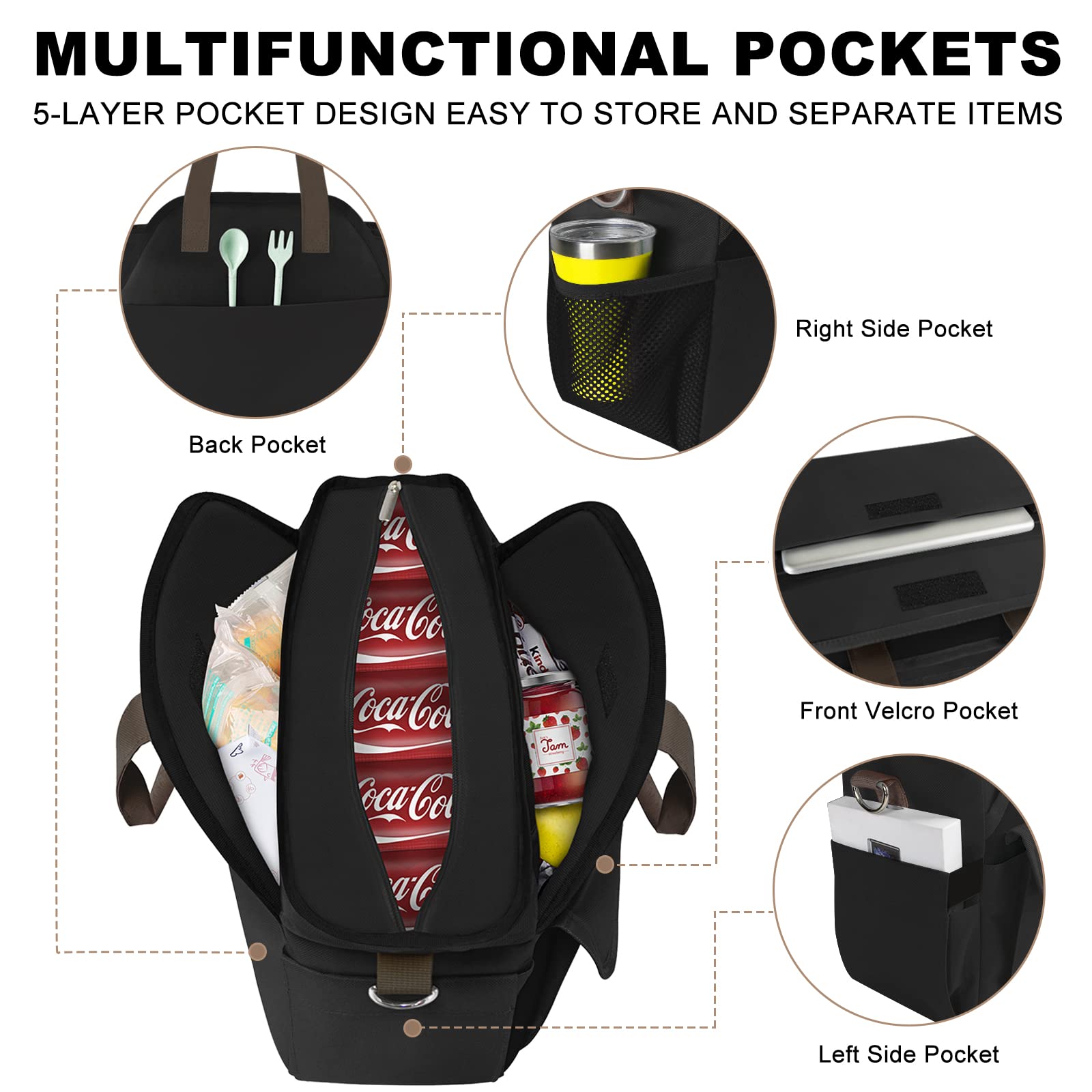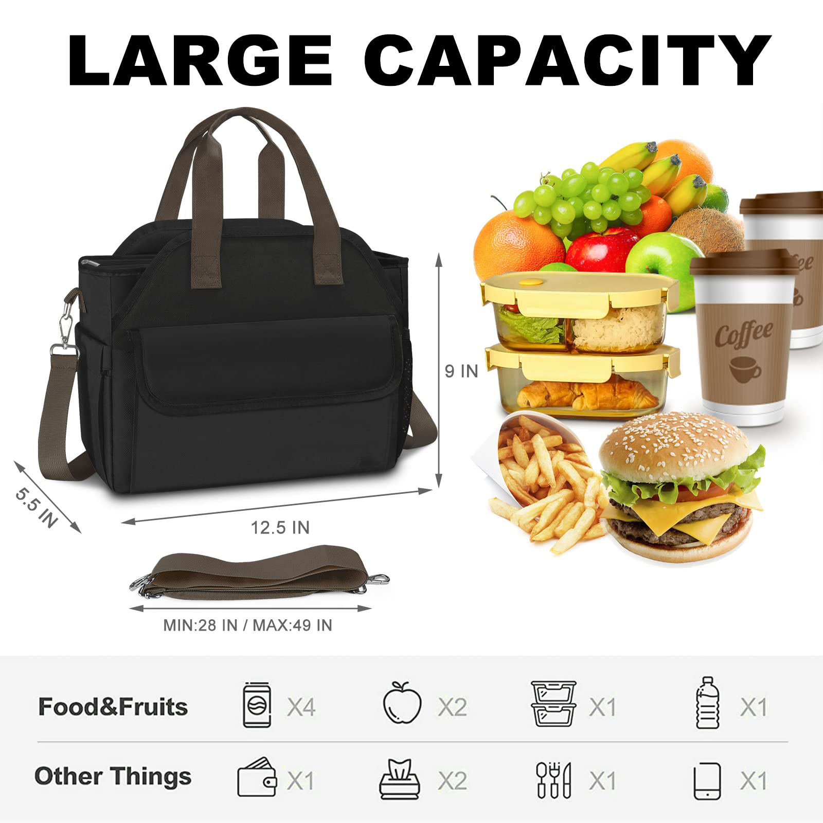 Lunch Bags for Women, Insulated Large Cooler Tote Bag for Adult Men with 4 Icepacks&2 Storage Pocket, Cute Lunch Bag with Removable Shoulder Strap, Leakproof Lunch Box for Work,Picnic,Beach